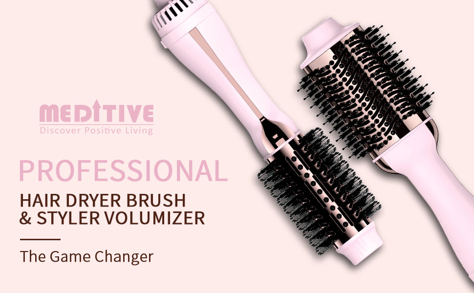 The MEDITIVE Hot Air Brush is designed with a ceramic tourmaline-coated brush head that offers numerous benefits for your hair. Ceramic is known for its even heat distribution, which helps prevent hot spots that can lead to damage. Tourmaline, a naturally occurring mineral, emits negative ions when heated, which neutralize static and seal the hair cuticle, resulting in frizz-free, shiny hair.One of the standout features of the MEDITIVE Hot Air Brush is its ionic functionality. This technology emits negative ions that interact with your hair, say goodbye to tangled cords and awkward styling angles with the MEDITIVE Hot Air Brush. The 360-degree swivel cord allows you to move the brush freely in any direction. Every hair type is unique, which is why the MEDITIVE Hot Air Brush comes with three heat settings and two speed options. Whether you’re looking to create a sleek, straight look or add volume and bounce to your hair, you can choose the perfect combination of heat and speed to suit your styling needs.